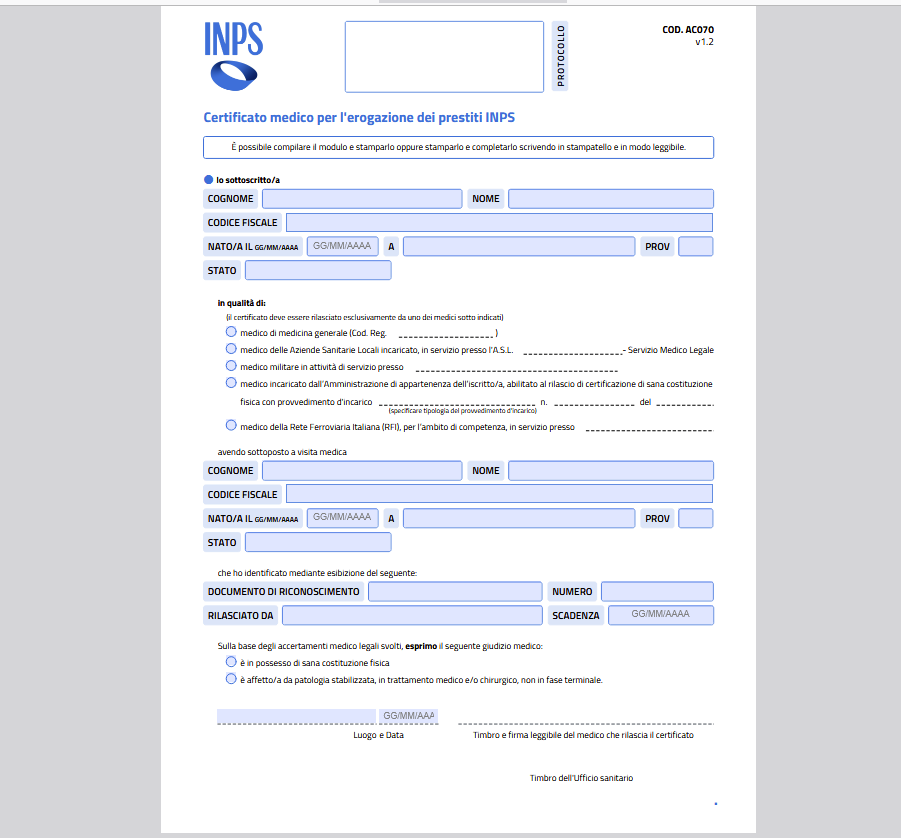 per il rilascio del certificato medico per la richiesta del
